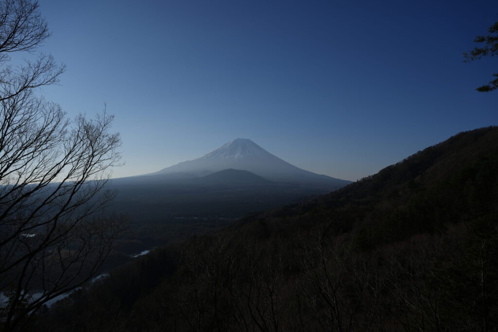 精進湖からパノラマ台、烏帽子岳、三方分山と回ってきました。富士山と木々の間か...