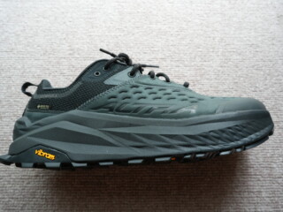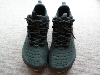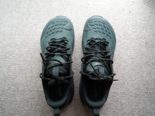 普段履きにしているHOKAのランニングシューズように足全体を包み込むような感覚もありません。ごついスニーカーのような感じです。早いうちに実際の山で感触を試したいです。