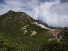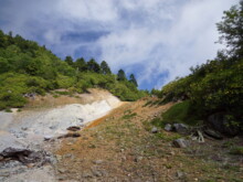 本沢温泉に到着したところでガスに囲まれた。引き返そうか逡巡しているうちに晴れてきた。その後も晴れたり曇ったりでいつ雨が降り出すか気が気でなかった。もう雨が降りそうな曇りの日に山に登るのはやめようと思う。が、そうすると登れる回数が減るんですよね~。