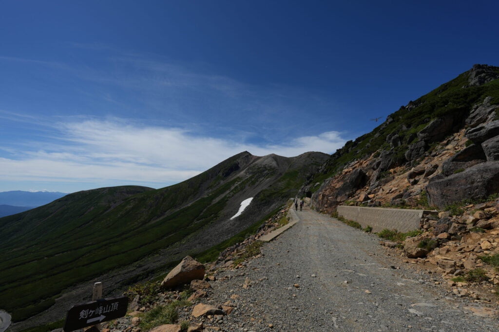 シャトルバスは、乗鞍観光センターから登山口のある畳平に向けて始発が7:00、次発が8:30、以降は1時間ごとに出発します。乗鞍観光センター~畳平間は約50分ほどかかり、大型バスはすれ違えないくらいの道幅なのでこのような運用になっているのでしょう。輸送量を増やすにはバスの台数を増やすしかなさそうです。木曽駒ケ岳の菅の台~千畳敷間のような感じです。道幅はそれより狭い。