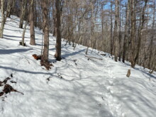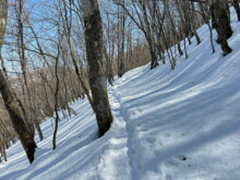 水根駐車場から水根林道を経て鷹ノ巣山に登ってきました。下山は石尾根を歩き六ツ石山から尾根を降り、水根駐車場に戻りました。この日は気温が高く、都心の気温は奥多摩でも早春の山歩きのような感じでした。そのおかげで雪が緩んでいて歩きづらいことこの上ない。ま、久々のロングの雪道あるで楽しかったです。