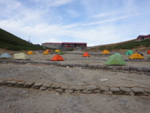 テン泊装備でいつもどおり休憩時間込みで標準CTどおり歩こうという目論見はやっぱりむちゃでした。弓折中段で失速、脚に力が入らず10分進んで2分休むぐらいまでペースダウン。前半飛ばしすぎました。双六小屋のテン場に到着したときは膝ガクガクでした。下山後二日経ったが、まだふくらはぎが痛い。