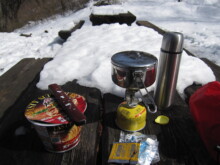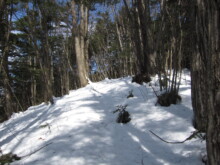 思わぬ形で初めての雪歩きとなりました。軽アイゼンなど持っていませんでしたが雪が深くツボ足で済んだため滑って転倒などの心配はありませんでした。ただ、細い木の幹に捕まった際、冬場乾燥していたためか幹が折れてしまいコケました。折れた際の音がすごく奇麗でした。