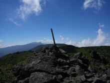 三ッ岳の山頂手前、ほぼ垂直の壁に赤ペンキで真上に向いている矢印を見つけたときは「真っ直ぐ上かよ!!」と呟いてしまいました。